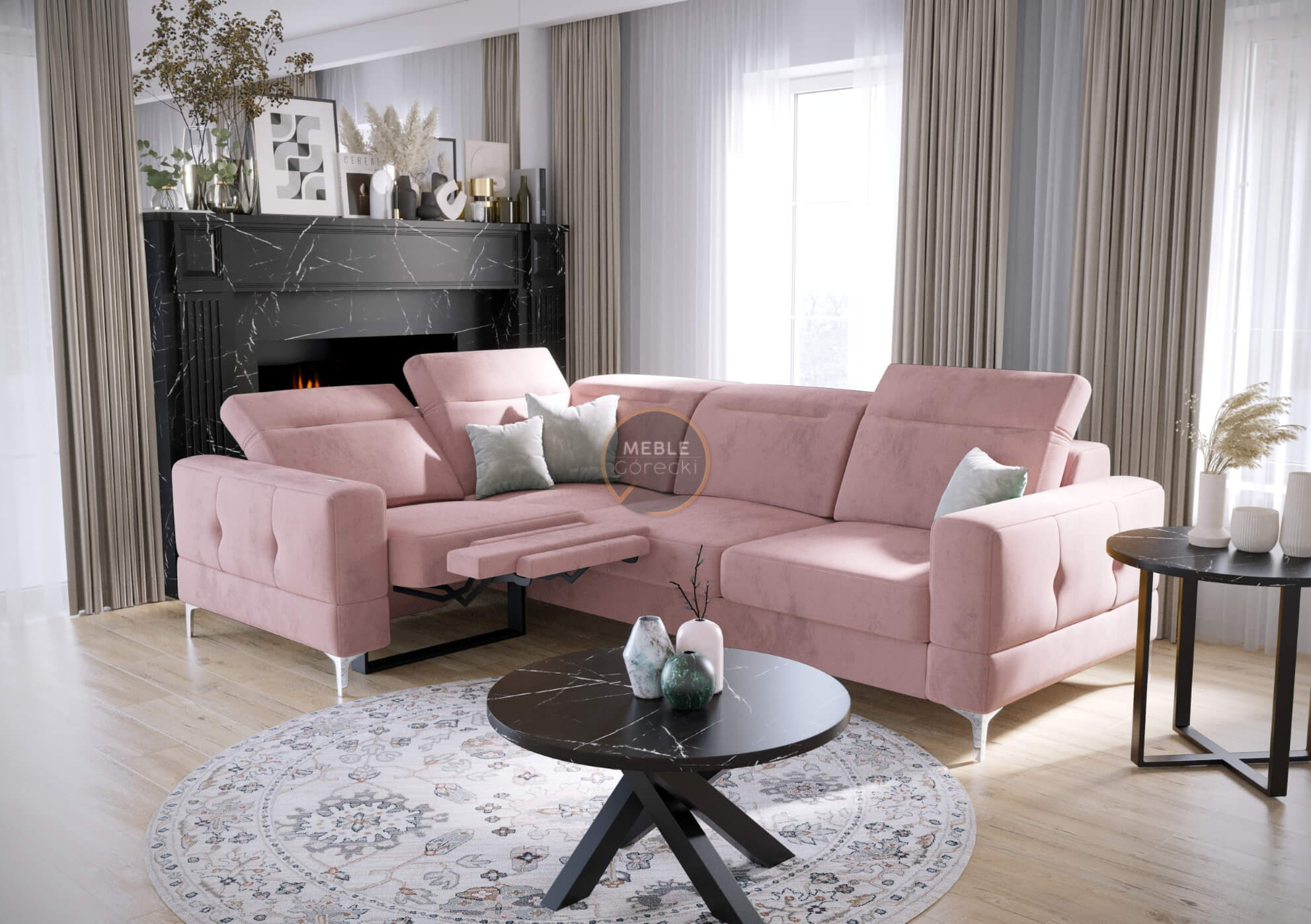 Rohová sedací souprava MALIBU , relax s funkcí spaní 185x250 cm - levá, růžová