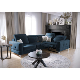 Rohová sedací souprava MALIBU , relax s funkcí spaní 185x250 cm - modrá , pravá