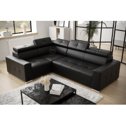 Rohová sedací souprava MARGO II 270×197 přírodní kůže - černá kůže , levá