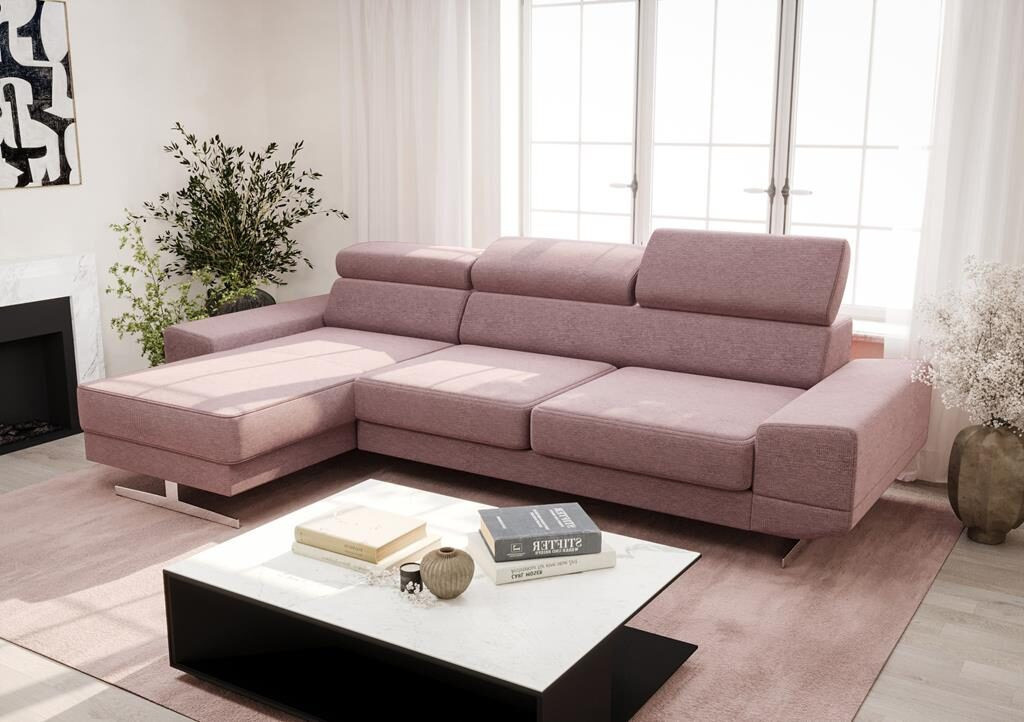 Rohová sedací souprava MILANO MINI 270 cm - růžová, levá
