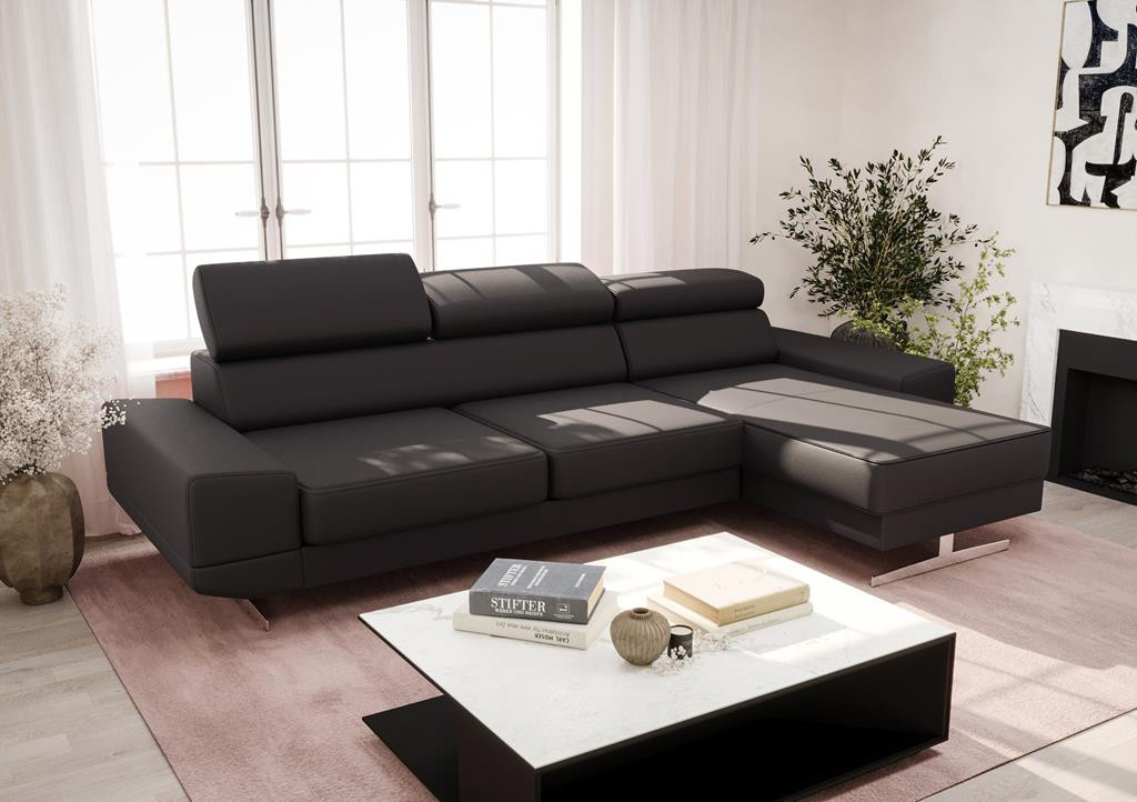 Rohová sedací souprava MILANO MINI přírodní kůže - černá kůže, pravá