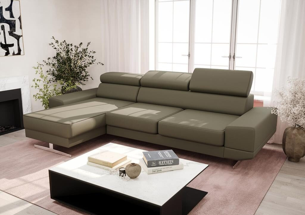 Rohová sedací souprava MILANO MINI přírodní kůže - Olivová kůže, levá