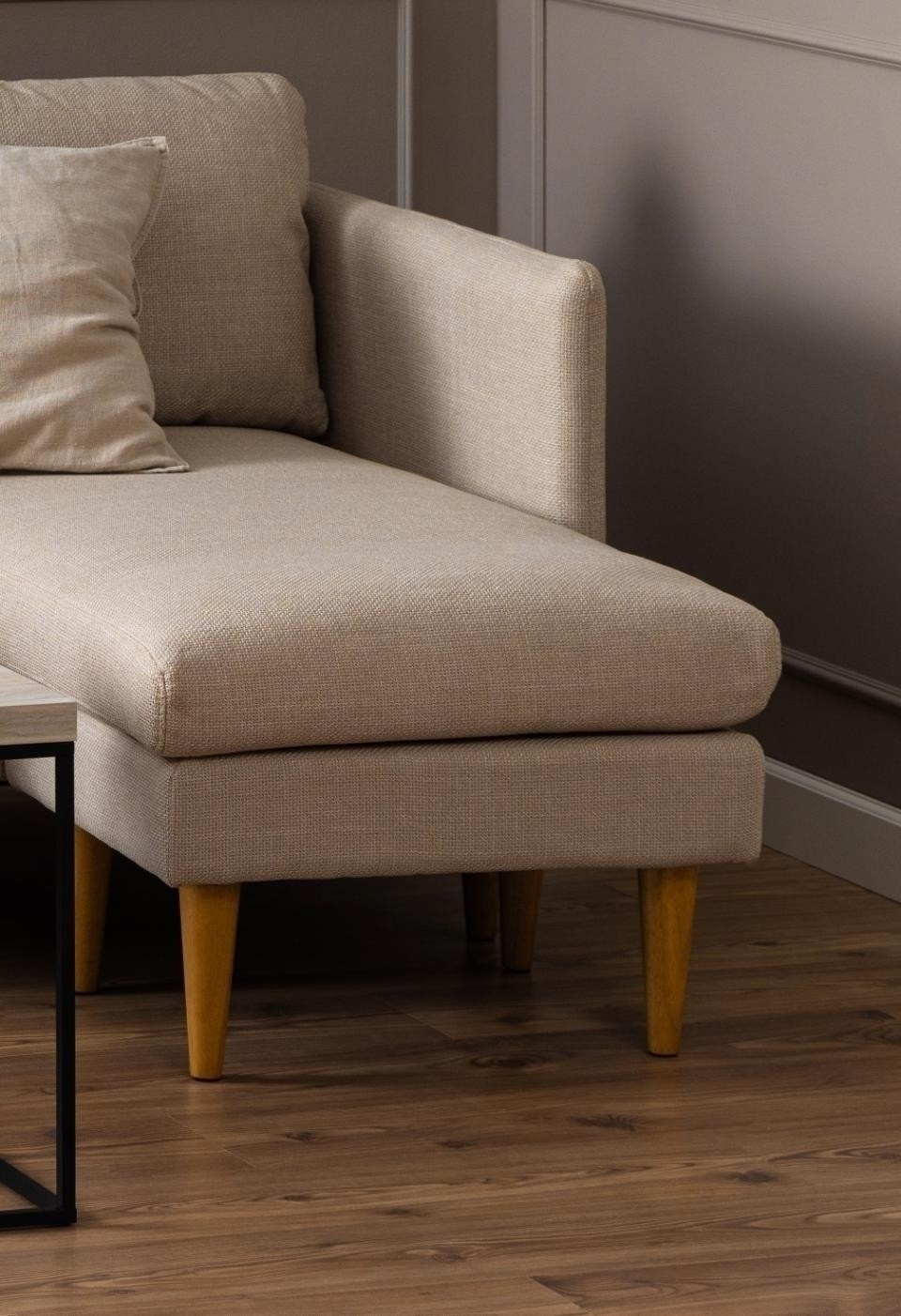 Každý dům si zaslouží pohodlnou a praktickou pohovku, jako je tato. Je vybavena taštičkovými pružinami pro větší pohodlí a lenoškou. V tomto případě si nemusíte vybírat stranu - můžete ji měnit, jak chcete, díky stálému oboustrannému lenošce. Sofa je čalouněná béžovou látkou s dvoubarevným efektem, což jí dodává pěkný vzhled. Lehký, moderní vzhled zajišťují kónické dřevěné nohy v barvě dubu. Hlavní vlastnosti:; 2místná pohovka s lenoškou ideální do malých bytů, Vybavena pevnou, oboustrannou lenoškou, Kapsové pružiny zajišťují vysoký komfort sezení, Volné opěrné a sedací polštáře, Tenké područky zajišťují moderní vzhled, Čalouněná béžovou látkou s dvoubarevným efektem, Kónické dřevěné nohy mořené na dub