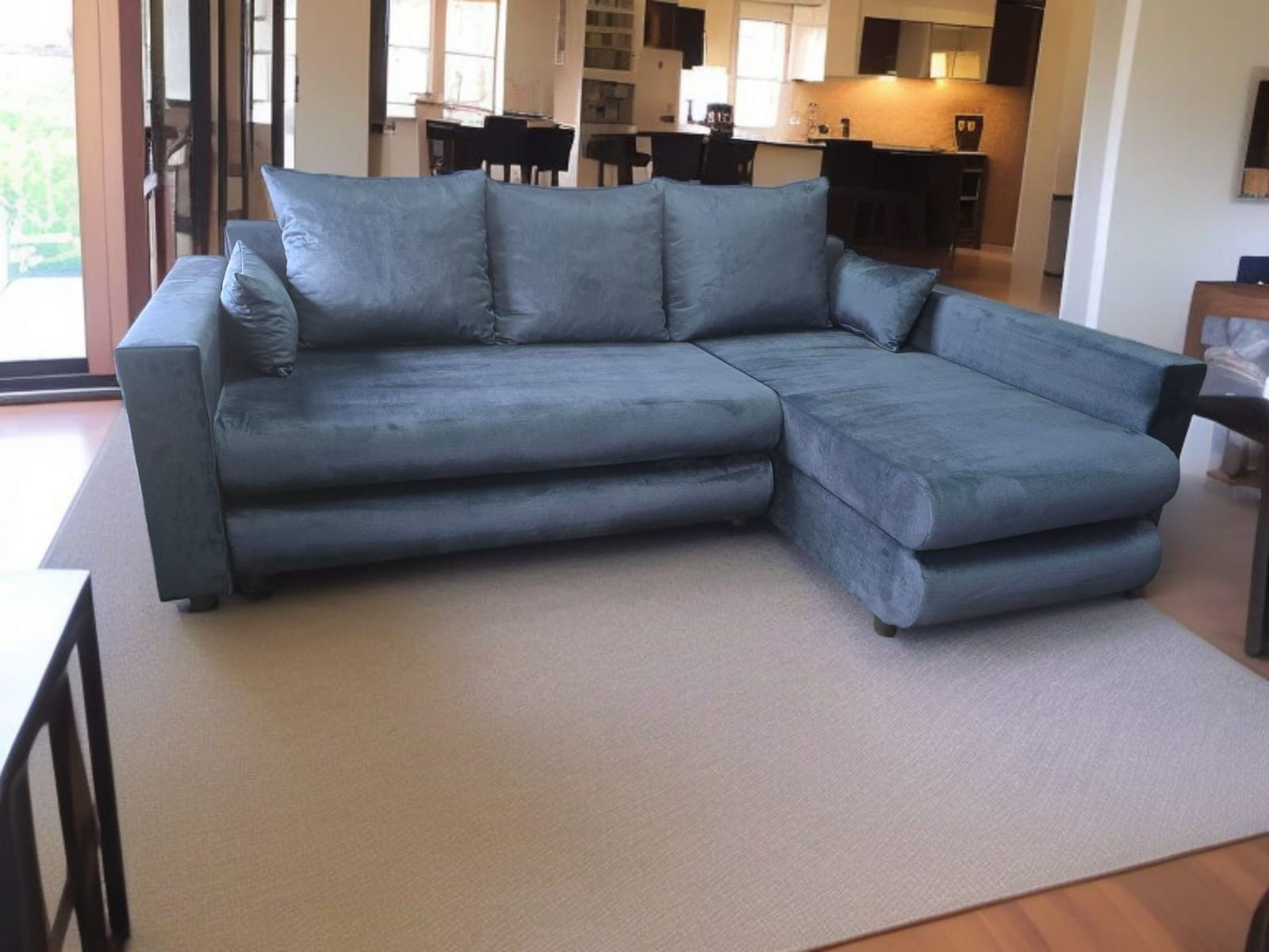 Rohová sedačka Nina je elegantní a funkční kus nábytku, který spojuje moderní vzhled s vysokým komfortem používání. Jeho jemná forma a univerzální design zajišťují, že se dokonale hodí k různým interiérovým aranžmá. Konstrukce je založena na rámu z borovicového dřeva a nábytkové desky, což zajišťuje trvanlivost a stabilitu na léta. Sedák vyrobený z pěny o tloušťce 10 cm a vlnité pružiny zaručuje pohodlí během každodenního odpočinku. Rohová sedačka je vybavena funkcí spaní s rozkládacím systémem na automatu DL, což umožňuje rychlé a bezproblémové přeměnění nábytku na postel. Další výhodou jsou dva úložné prostory na ložní prádlo, které poskytují praktické místo pro uskladnění. Rozměry: Celková šířka: 235 cm Hloubka: 155 cm Plocha na spaní: 210 × 145 cm Všechny rozměry jsou uváděny s tolerancí +/- 3 cm.