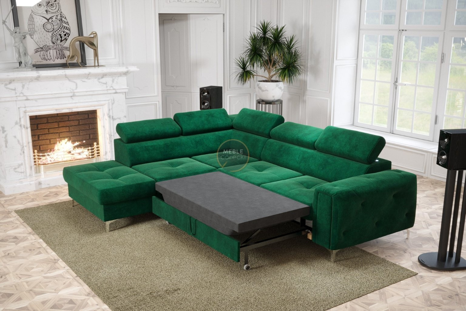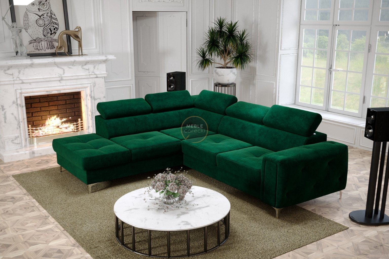 Kolekce čalouněného nábytku Orion je něco, co nikde jinde nenajdete! Charakteristickým prvkem jsou krásně zdobené, prošívané boky ve stylu glamour. Kromě estetických prvků stojí za to věnovat pozornost dokončení v podobě nastavitelných opěrek hlavy, které usnadní přizpůsobení výšky opěradla tak, aby byla pro vás ideální. Vysoké 13 cm kovové nohy podtrhují celek a dodávají konstrukci lehkost.