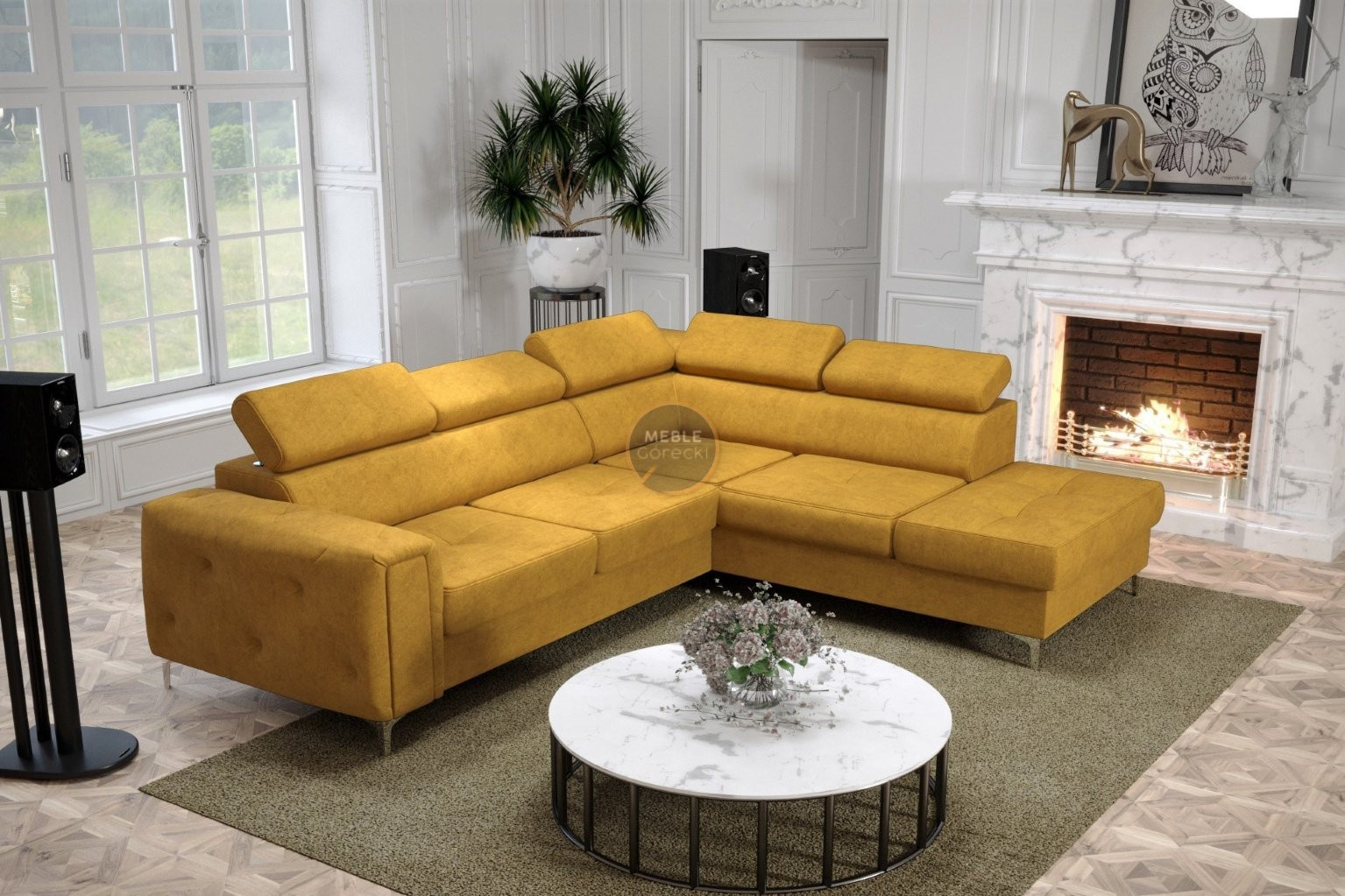 Kolekce čalouněného nábytku Orion je něco, co nikde jinde nenajdete! Charakteristickým prvkem jsou krásně zdobené, prošívané boky ve stylu glamour. Kromě estetických prvků stojí za to věnovat pozornost dokončení v podobě nastavitelných opěrek hlavy, které usnadní přizpůsobení výšky opěradla tak, aby byla pro vás ideální. Vysoké 13 cm kovové nohy podtrhují celek a dodávají konstrukci lehkost.