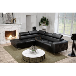 Rohová sedací souprava ORION II s funkcí spaní 225x255 cm přírodní kůže - černá kůže, Levá strana