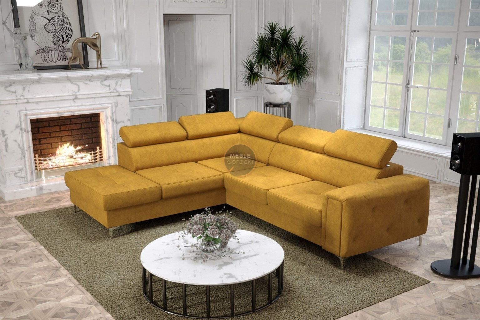 Kolekce čalouněného nábytku Orion je něco, co nikde jinde nenajdete! Charakteristickým prvkem jsou krásně zdobené, prošívané boky ve stylu glamour. Kromě estetických prvků stojí za to věnovat pozornost dokončení v podobě nastavitelných opěrek hlavy, které usnadní přizpůsobení výšky opěradla tak, aby byla pro vás ideální. Vysoké 13 cm kovové nohy podtrhují celek a dodávají konstrukci lehkost.