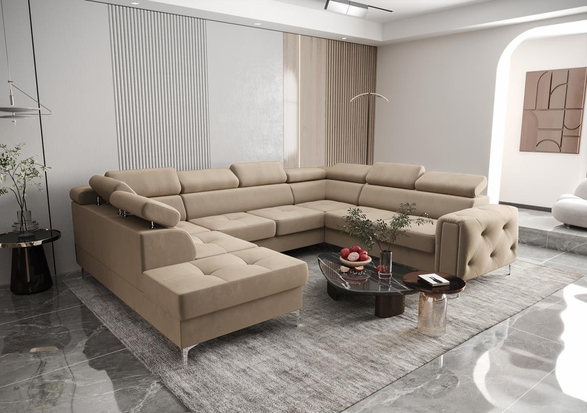 Rohová sedací souprava ORION MAX I s funkcí spaní 225X350X255 cm - béžová, pravá