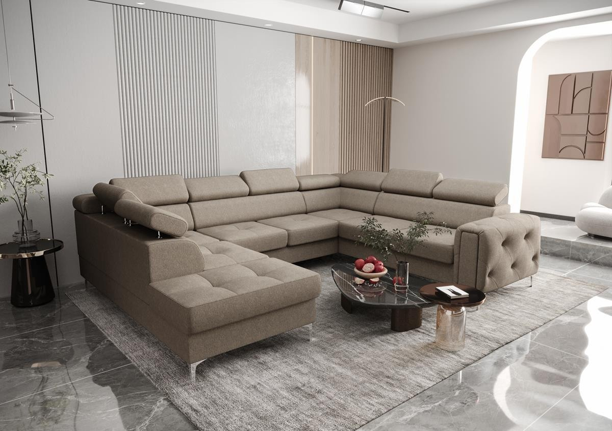 Rohová sedací souprava ORION MAX I s funkcí spaní 225X350X255 cm - hnědá , pravá