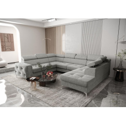 Kolekce čalouněného nábytku Orion je něco, co nikde jinde nenajdete! Charakteristickým prvkem jsou krásně zdobené, prošívané boky ve stylu glamour. Kromě estetických prvků stojí za to věnovat pozornost dokončení v podobě nastavitelných opěrek hlavy, které usnadní přizpůsobení výšky opěradla tak, aby byla pro vás ideální. Vysoké 13 cm kovové nohy podtrhují celek a dodávají konstrukci lehkost.