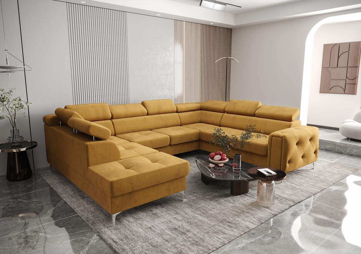 Rohová sedací souprava ORION MAX I s funkcí spaní 225X350X255 cm - žlutá, levá