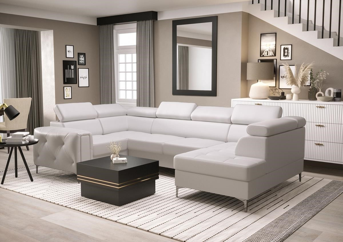 Rohová sedací souprava ORION MAX II s funkcí spaní 165x350x185 cm - bílá eko kůže, levá