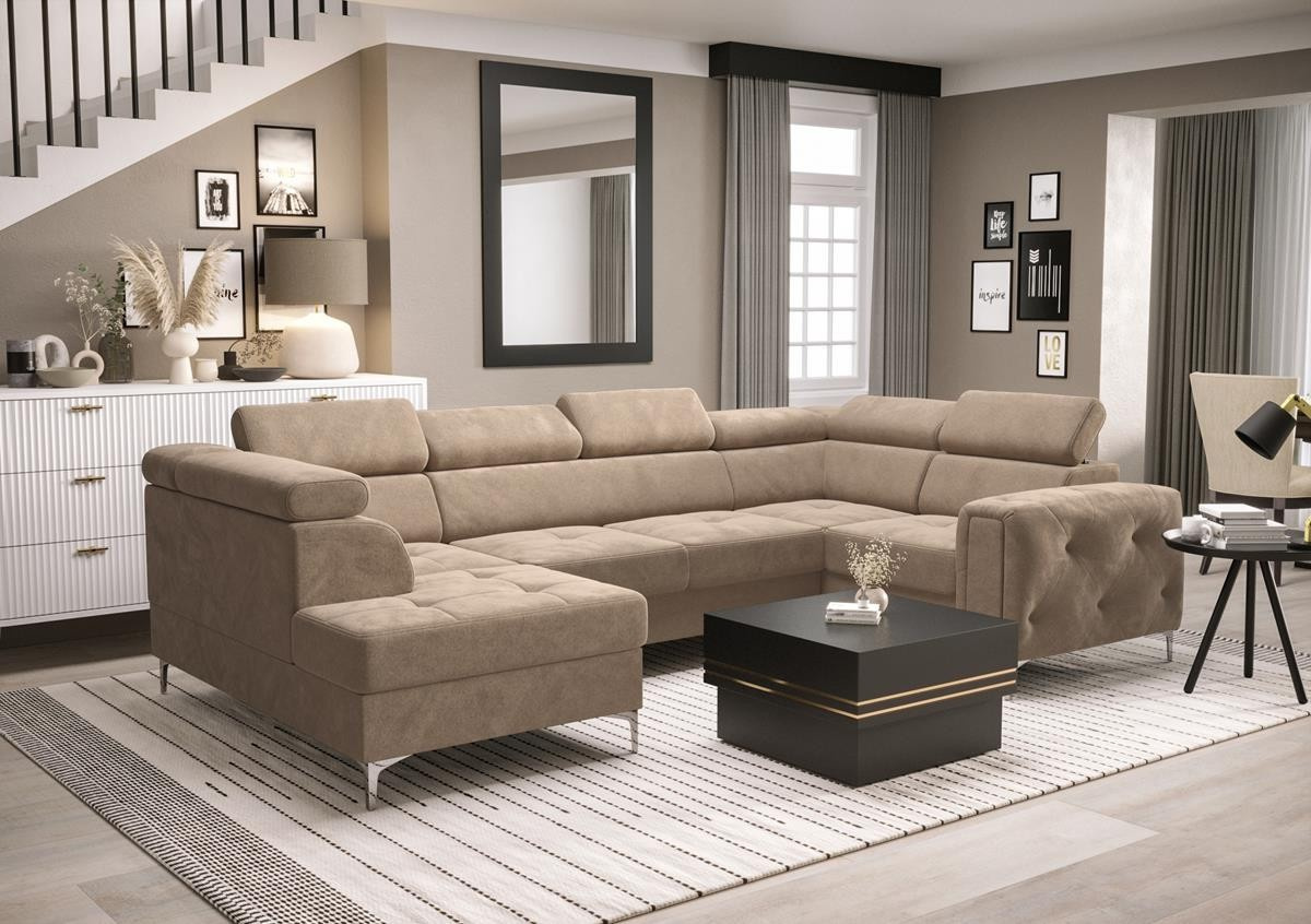 Kolekce čalouněného nábytku Orion je něco, co nikde jinde nenajdete! Charakteristickým prvkem jsou krásně zdobené, prošívané boky ve stylu glamour. Kromě estetických prvků stojí za to věnovat pozornost dokončení v podobě nastavitelných opěrek hlavy, které usnadní přizpůsobení výšky opěradla tak, aby byla pro vás ideální. Vysoké 13 cm kovové nohy podtrhují celek a dodávají konstrukci lehkost.