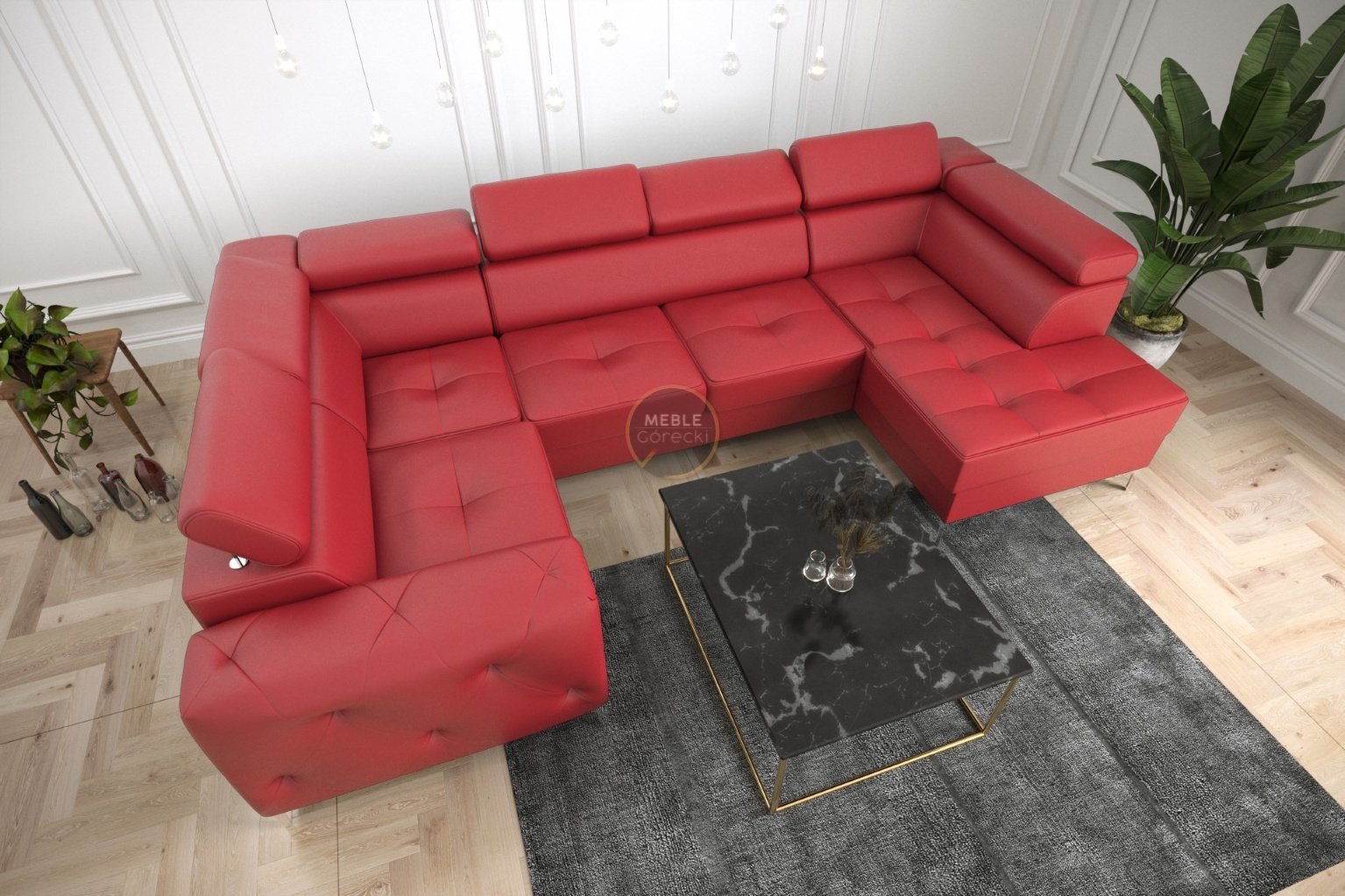 Rohová sedací souprava ORION MAX II s funkcí spaní 165x350x185 cm přírodní kůže - červená kůže, levá