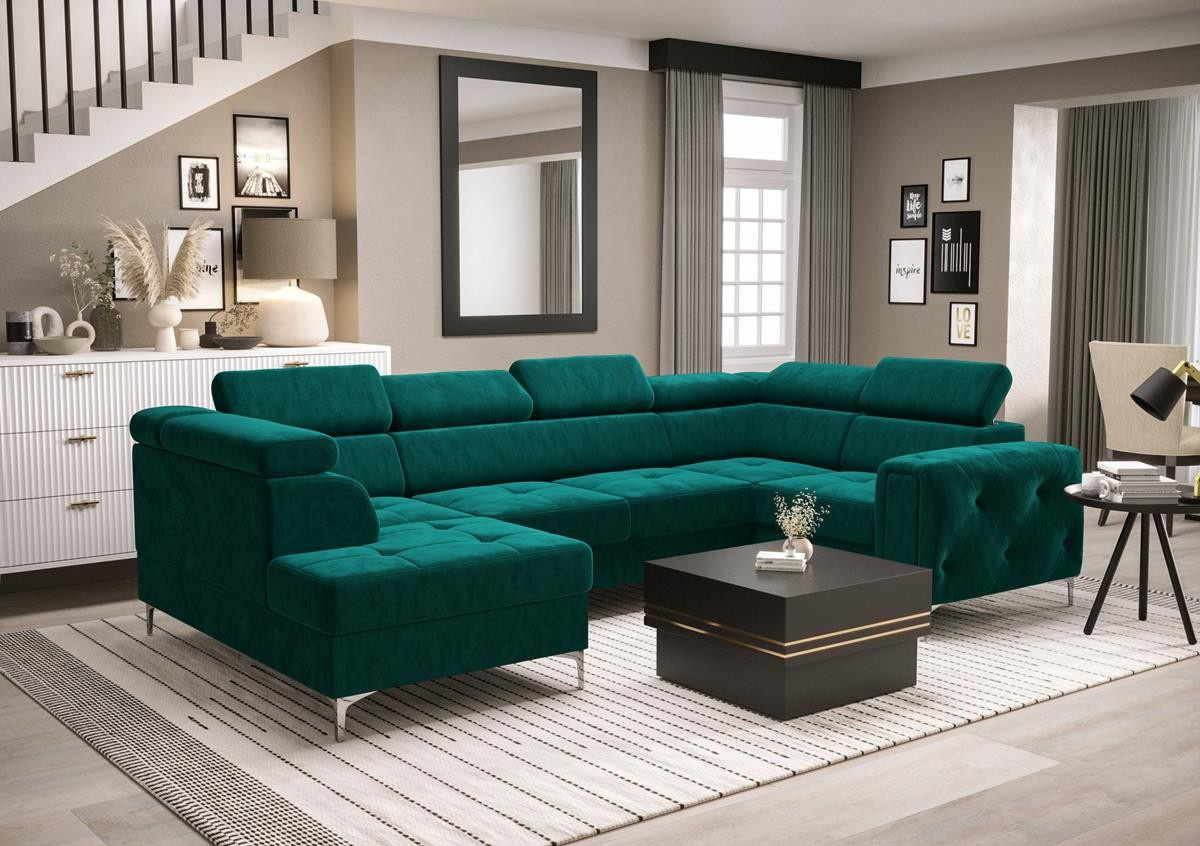 Kolekce čalouněného nábytku Orion je něco, co nikde jinde nenajdete! Charakteristickým prvkem jsou krásně zdobené, prošívané boky ve stylu glamour. Kromě estetických prvků stojí za to věnovat pozornost dokončení v podobě nastavitelných opěrek hlavy, které usnadní přizpůsobení výšky opěradla tak, aby byla pro vás ideální. Vysoké 13 cm kovové nohy podtrhují celek a dodávají konstrukci lehkost.
