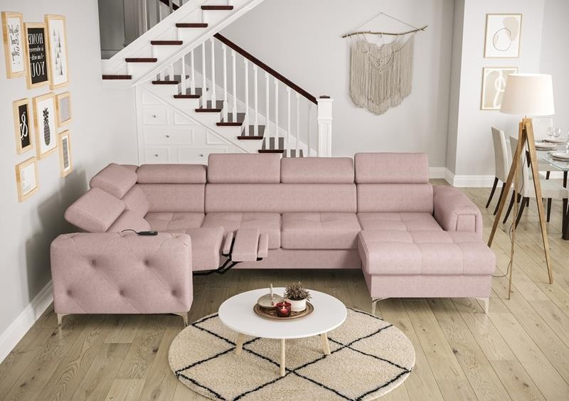Rohová sedací souprava ORION MAX III , relax s funkcí spaní 165x320x190 cm - růžová, levá
