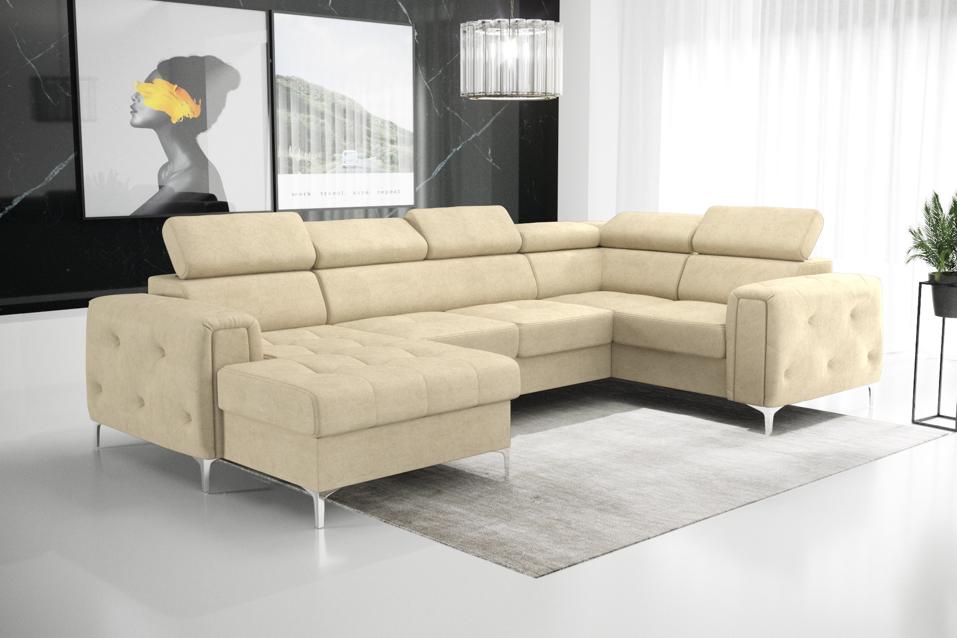 Kolekce čalouněného nábytku Orion je něco, co nikde jinde nenajdete! Charakteristickým prvkem jsou krásně zdobené, prošívané boky ve stylu glamour. Kromě estetických prvků stojí za to věnovat pozornost dokončení v podobě nastavitelných opěrek hlavy, které usnadní přizpůsobení výšky opěradla tak, aby byla pro vás ideální. Vysoké 13 cm kovové nohy podtrhují celek a dodávají konstrukci lehkost. RYCHLÉ DORUČENÍ 3-14 DNÍ V ZÁVISLOSTI NA MÍSTĚ DODÁNÍ