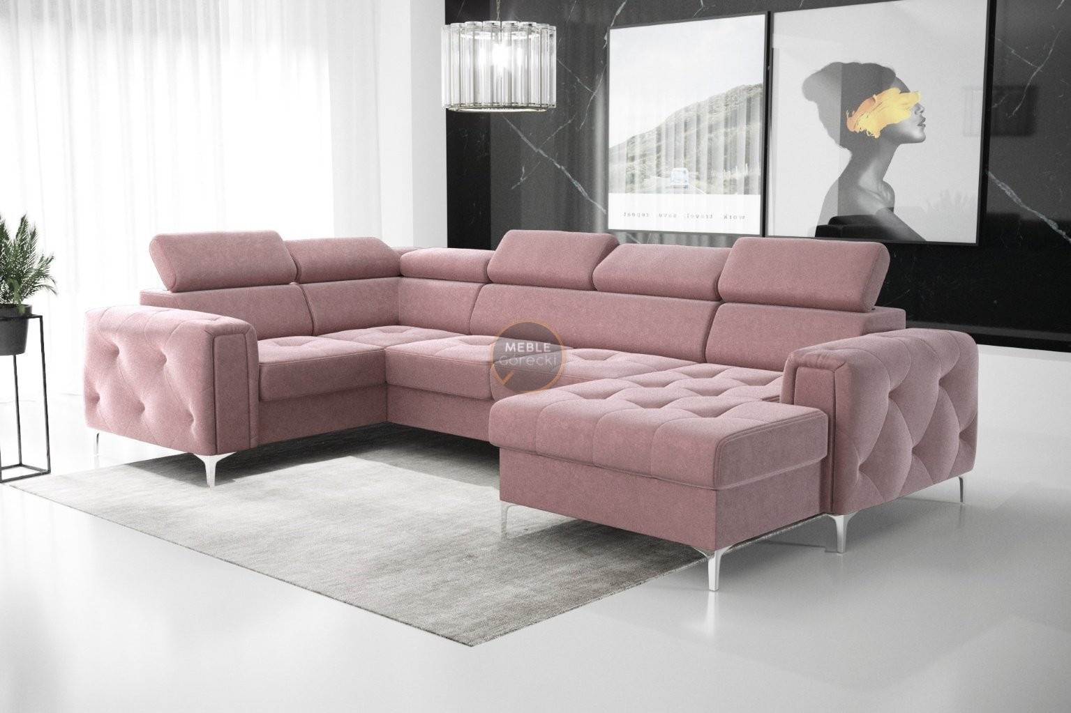 Kolekce čalouněného nábytku Orion je něco, co nikde jinde nenajdete! Charakteristickým prvkem jsou krásně zdobené, prošívané boky ve stylu glamour. Kromě estetických prvků stojí za to věnovat pozornost dokončení v podobě nastavitelných opěrek hlavy, které usnadní přizpůsobení výšky opěradla tak, aby byla pro vás ideální. Vysoké 13 cm kovové nohy podtrhují celek a dodávají konstrukci lehkost.