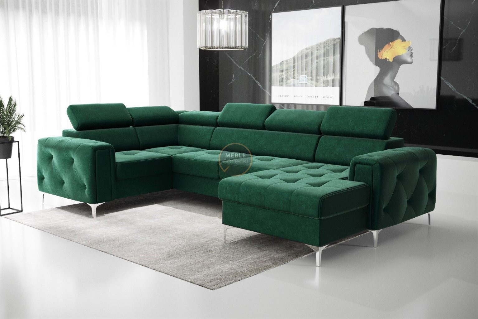 Kolekce čalouněného nábytku Orion je něco, co nikde jinde nenajdete! Charakteristickým prvkem jsou krásně zdobené, prošívané boky ve stylu glamour. Kromě estetických prvků stojí za to věnovat pozornost dokončení v podobě nastavitelných opěrek hlavy, které usnadní přizpůsobení výšky opěradla tak, aby byla pro vás ideální. Vysoké 13 cm kovové nohy podtrhují celek a dodávají konstrukci lehkost.