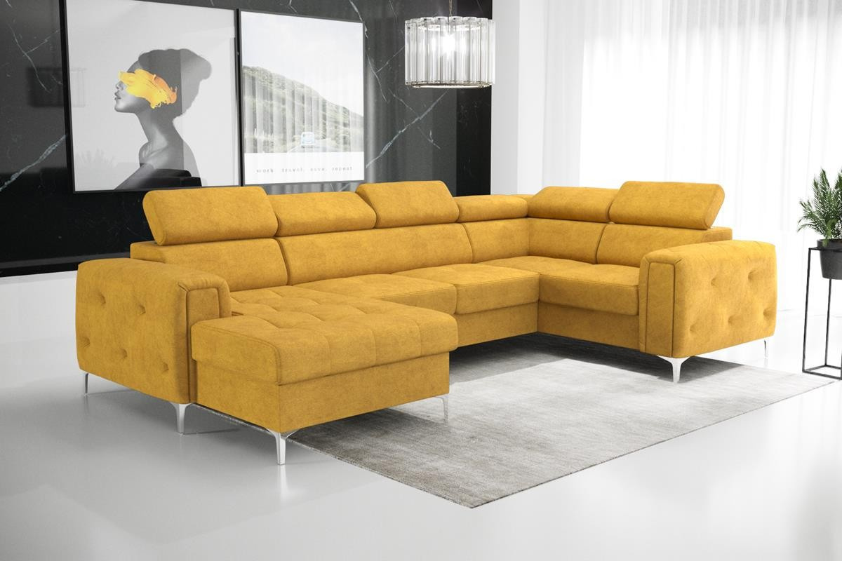 Rohová sedací souprava ORION MAX III s funkcí spaní 165x320x185 cm - žlutá , pravá