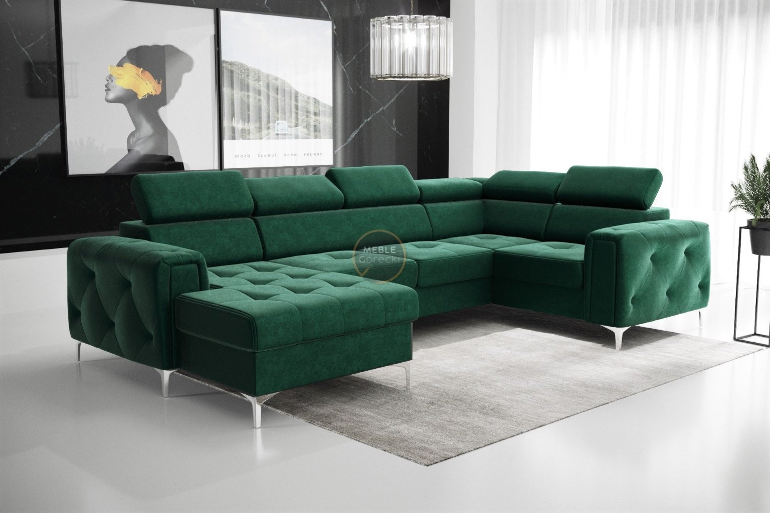 Kolekce čalouněného nábytku Orion je něco, co nikde jinde nenajdete! Charakteristickým prvkem jsou krásně zdobené, prošívané boky ve stylu glamour. Kromě estetických prvků stojí za to věnovat pozornost dokončení v podobě nastavitelných opěrek hlavy, které usnadní přizpůsobení výšky opěradla tak, aby byla pro vás ideální. Vysoké 13 cm kovové nohy podtrhují celek a dodávají konstrukci lehkost.