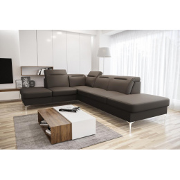 Rohová sedačka má nastavitelné, vícestupňové opěrky hlavy, chromované ozdobné nožky, sedáky s ozdobným prošíváním a především je vyrobena na vlnitých pružinách a vysoce elastické pěně, což zajišťuje vysoký komfort používání a zabraňuje deformaci nejčastěji používaných ploch. POZOR!!! Na aranžmá je zobrazen rohový gauč bez funkce spaní.