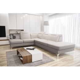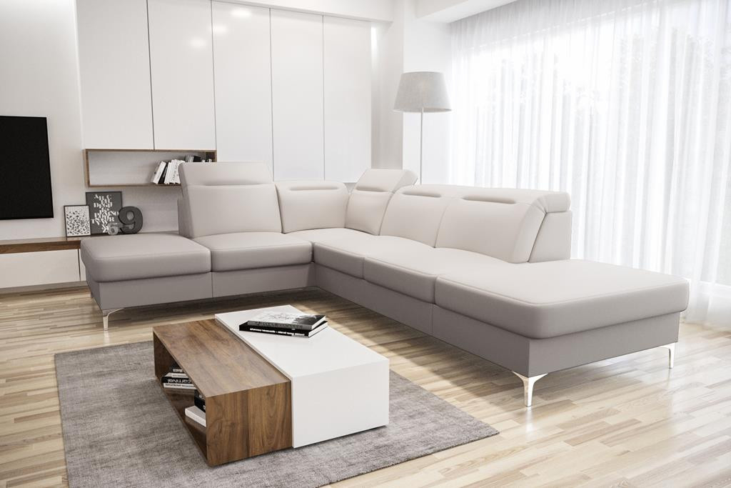 Rohová sedačka má nastavitelné, vícestupňové opěrky hlavy, chromované ozdobné nožky, sedáky s ozdobným prošíváním a především je vyrobena na vlnitých pružinách a vysoce elastické pěně, což zajišťuje vysoký komfort používání a zabraňuje deformaci nejčastěji používaných ploch. POZOR!!! Na aranžmá je zobrazen rohový gauč bez funkce spaní.