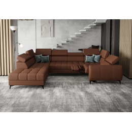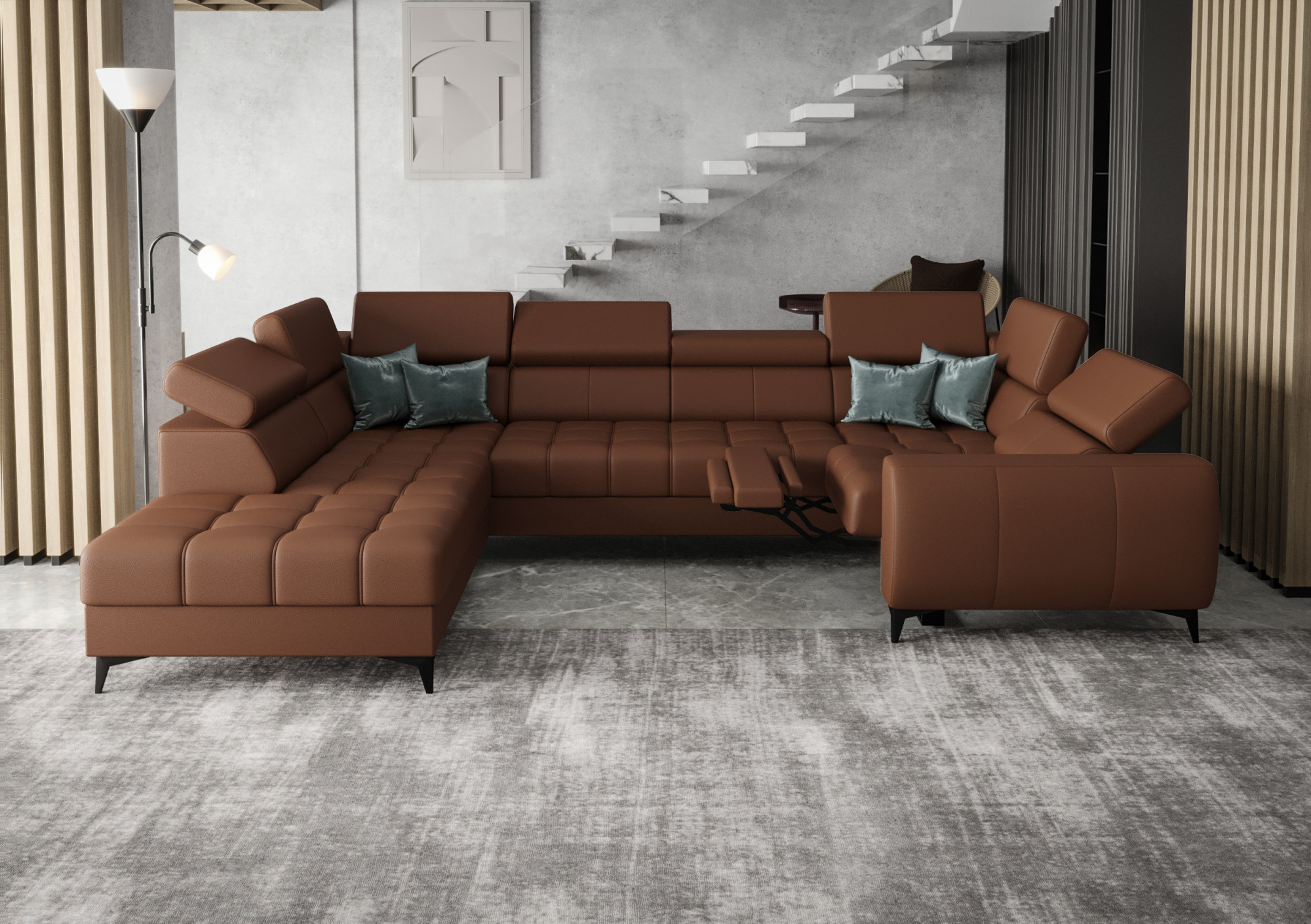 Rohová sedací souprava PORTO MAX I , relax přírodní kůže 225x350X193 cm - levá, Koňaková kůže