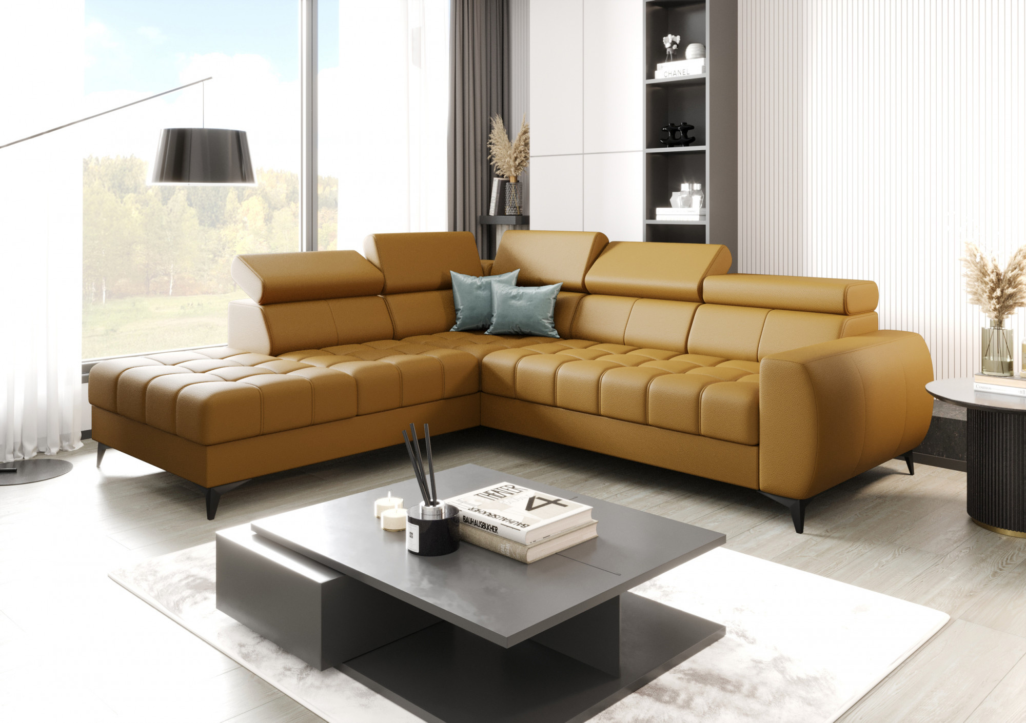 Rohová sedací souprava PORTO přírodní kůže 225x255 cm - levá, Kůže hořčicový mat