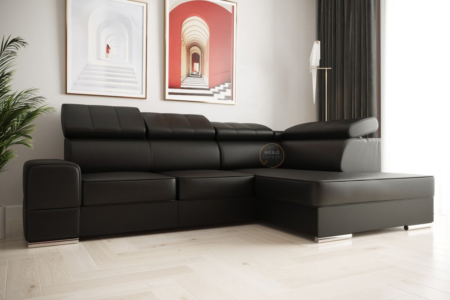 Rohová sedací souprava ROYAL I 260×185 přírodní kůže - černá kůže , pravá