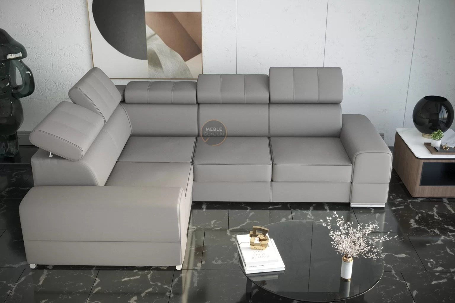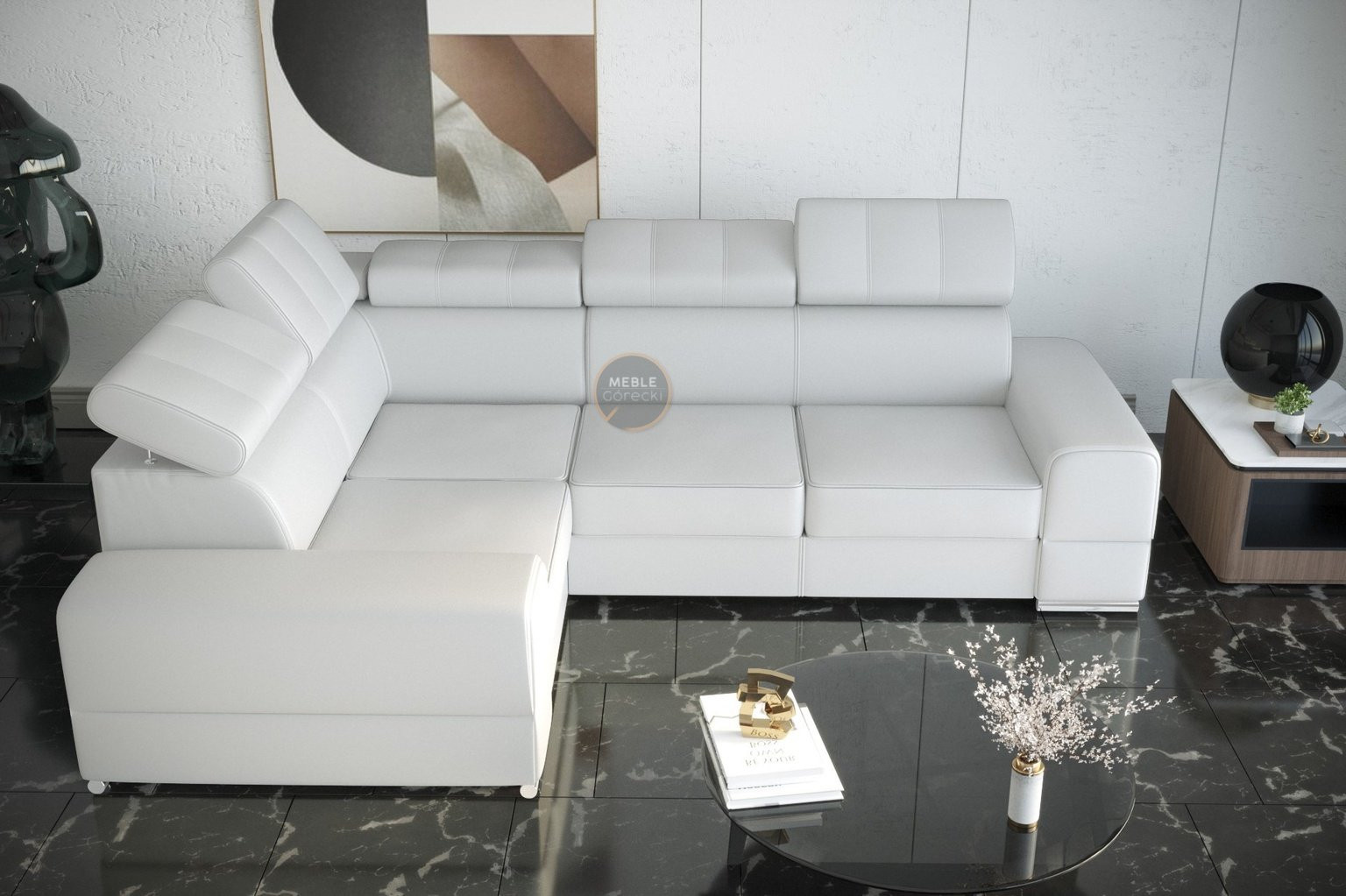 Rohová sedací souprava ROYAL II 280×210 přírodní kůže - bílá kůže , levá