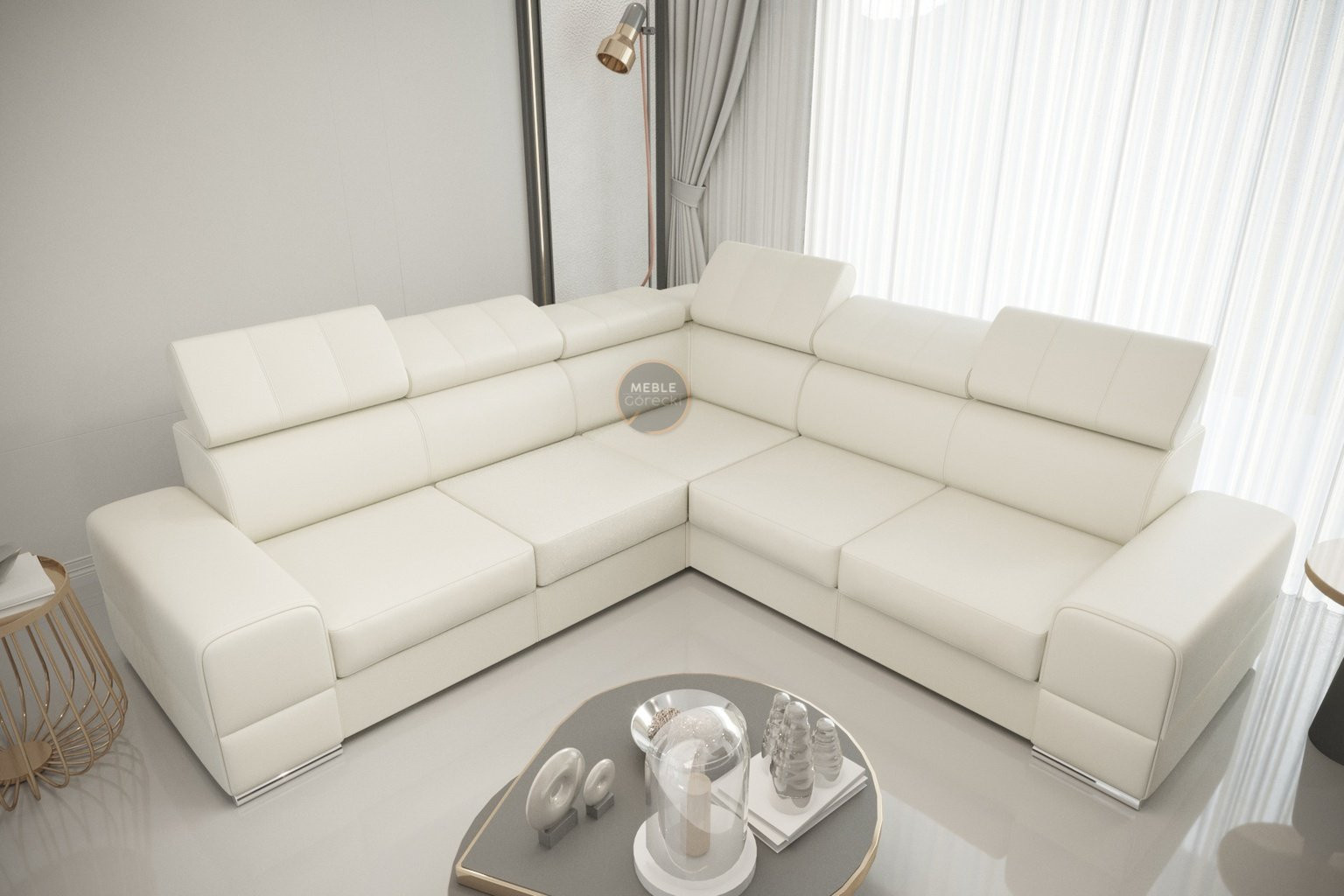 Rohová sedací souprava ROYAL MAX 286×286 - bílá eko kůže , pravá