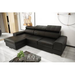 Rohová sedací souprava ROYAL MINI 260×160 přírodní kůže - černá kůže , levá