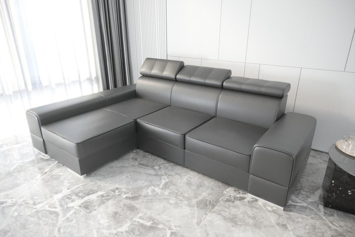 Rohová sedací souprava ROYAL přírodní kůže 295x185 - šedá kůže , levá