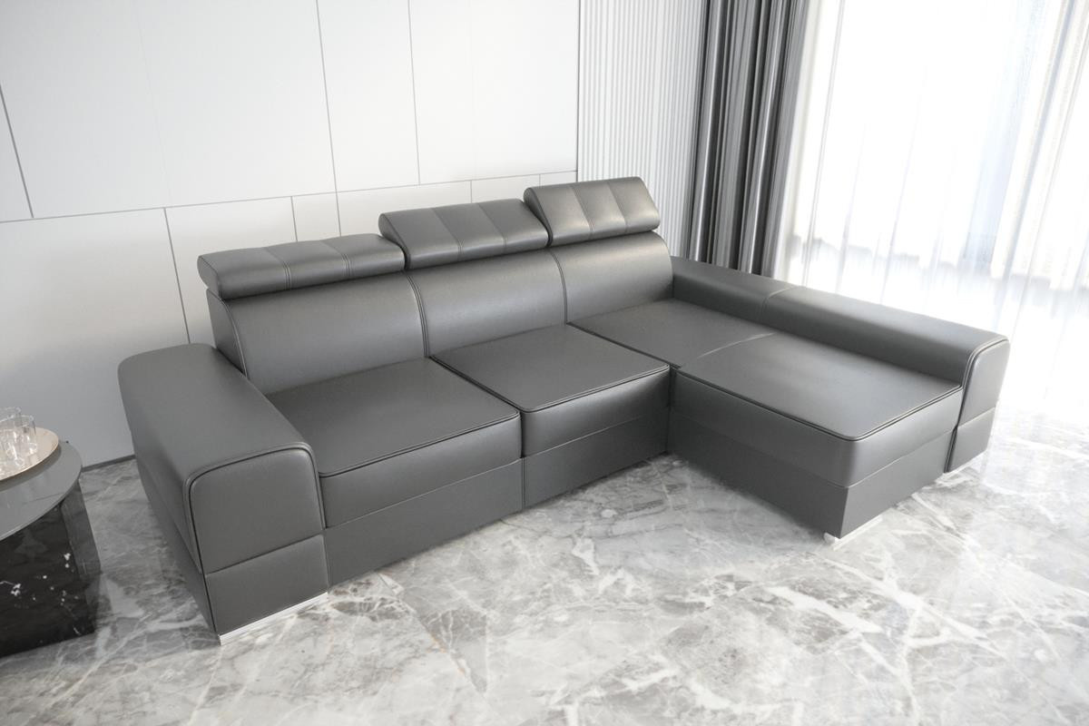 Rohová sedací souprava ROYAL přírodní kůže 295x185 - šedá kůže , pravá