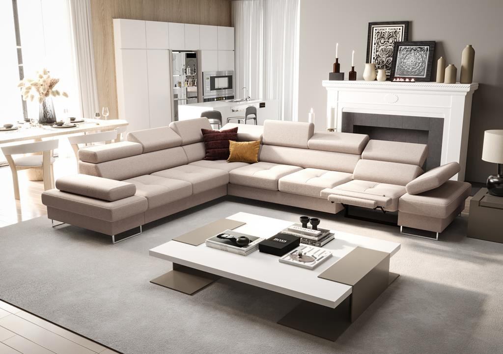Rohová sedací souprava s funkcí spaní a relaxace GALAXY MAX 350x280 cm - béžová, levá