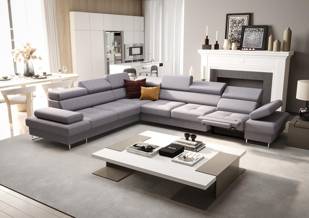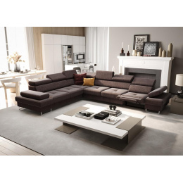 Rohová sedací souprava s funkcí spaní a relaxace GALAXY MAX 350x280 cm - hnědá , levá