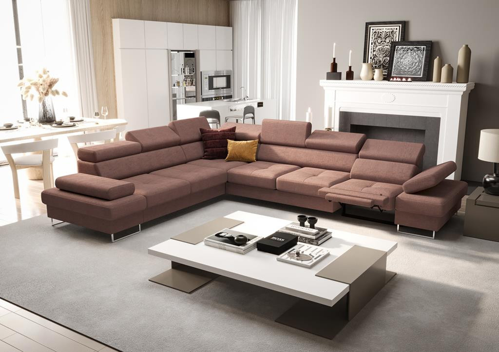 Rohová sedací souprava s funkcí spaní a relaxace GALAXY MAX 350x280 cm - starorůžová ,pravá