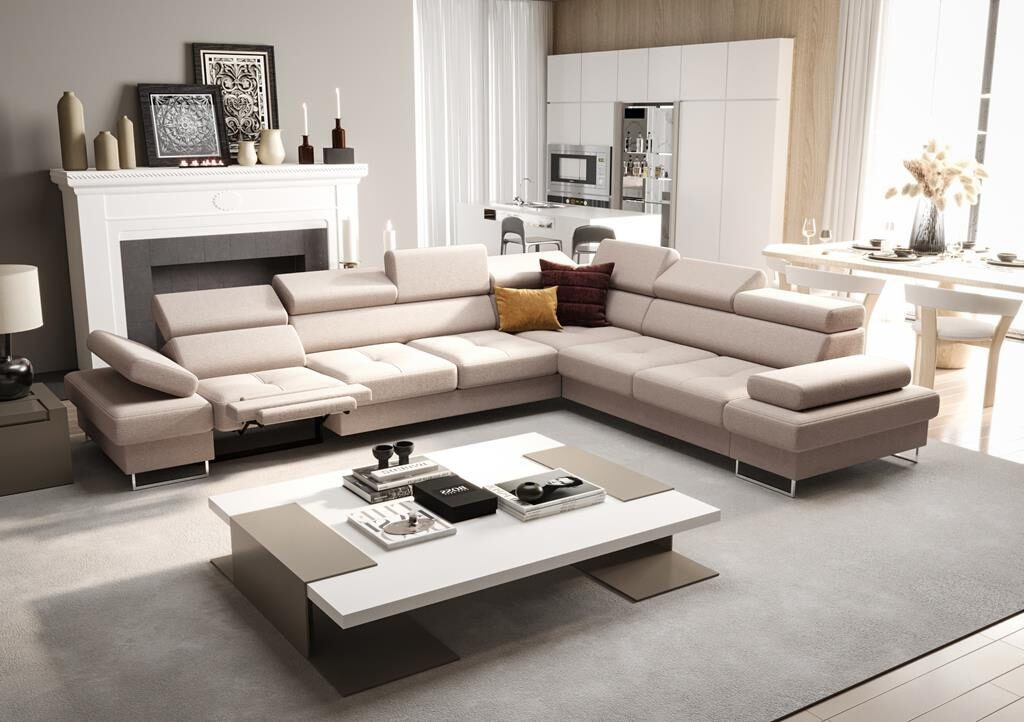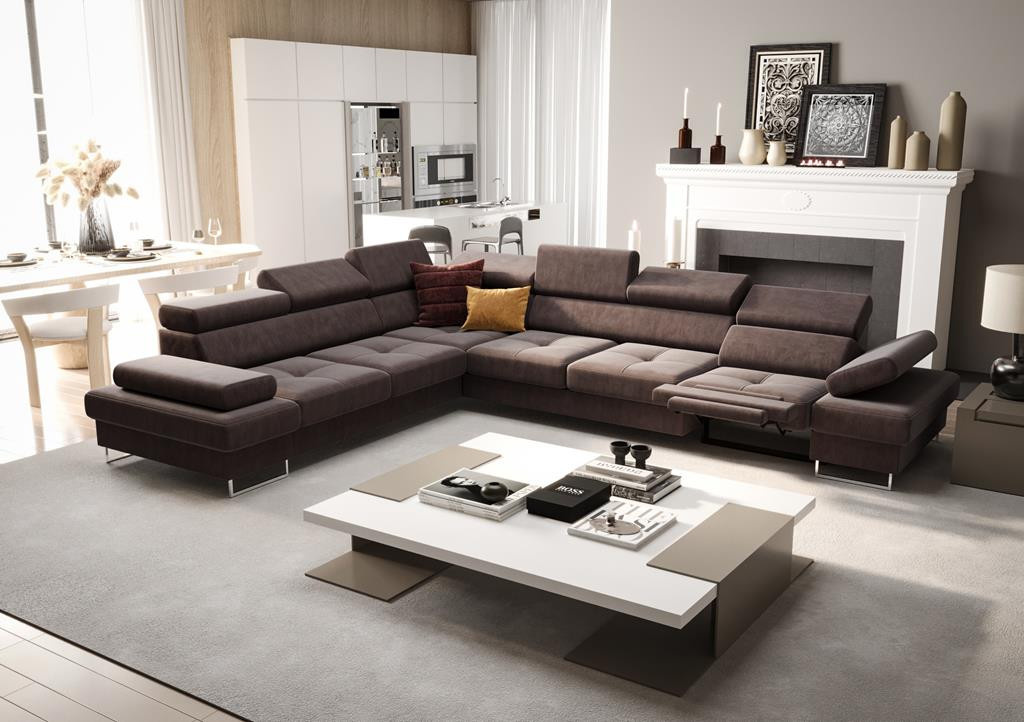 Rohová sedací souprava s funkcí spaní a relaxace GALAXY MAX 350x280 cm - volitelný odstín - levá