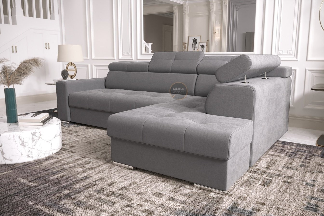 Rohová sedací souprava s funkcí spaní MARGO I 260×185 - modrá , pravá