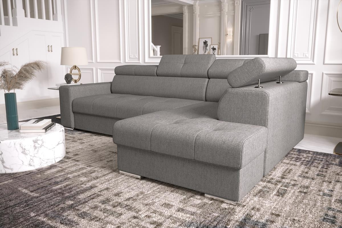 Rohová sedací souprava s funkcí spaní MARGO I 260×185 - šedá , pravá