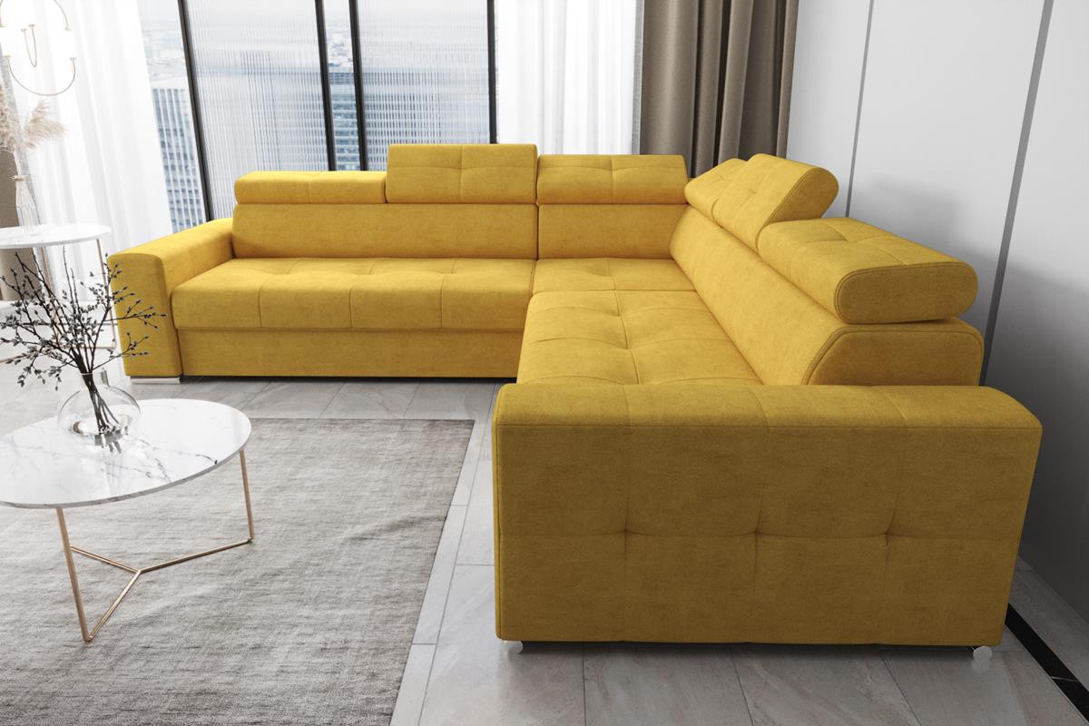 Rohová sedací souprava s funkcí spaní MARGO MAX 270x270 - žlutá , levá