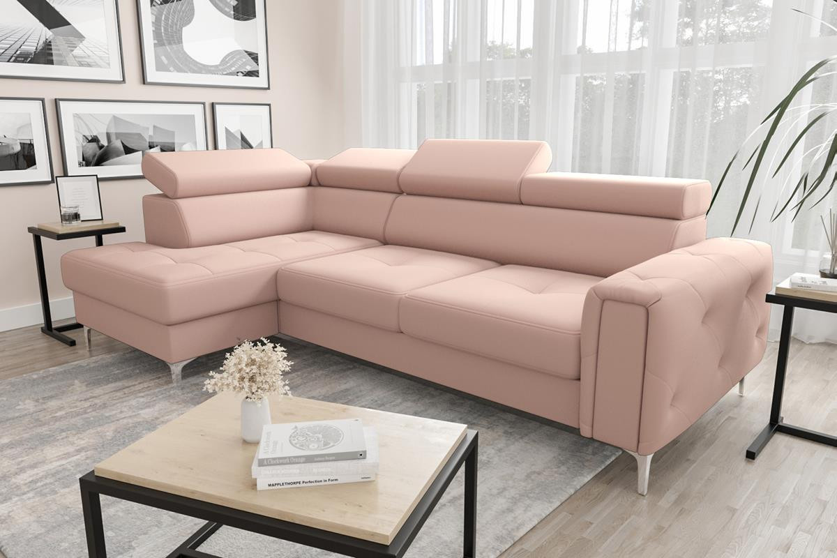 Rohová sedací souprava s funkcí spaní ORION 165x255 - růžová, levá