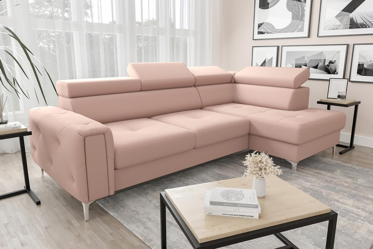 Rohová sedací souprava s funkcí spaní ORION 165x255 - růžová, pravá