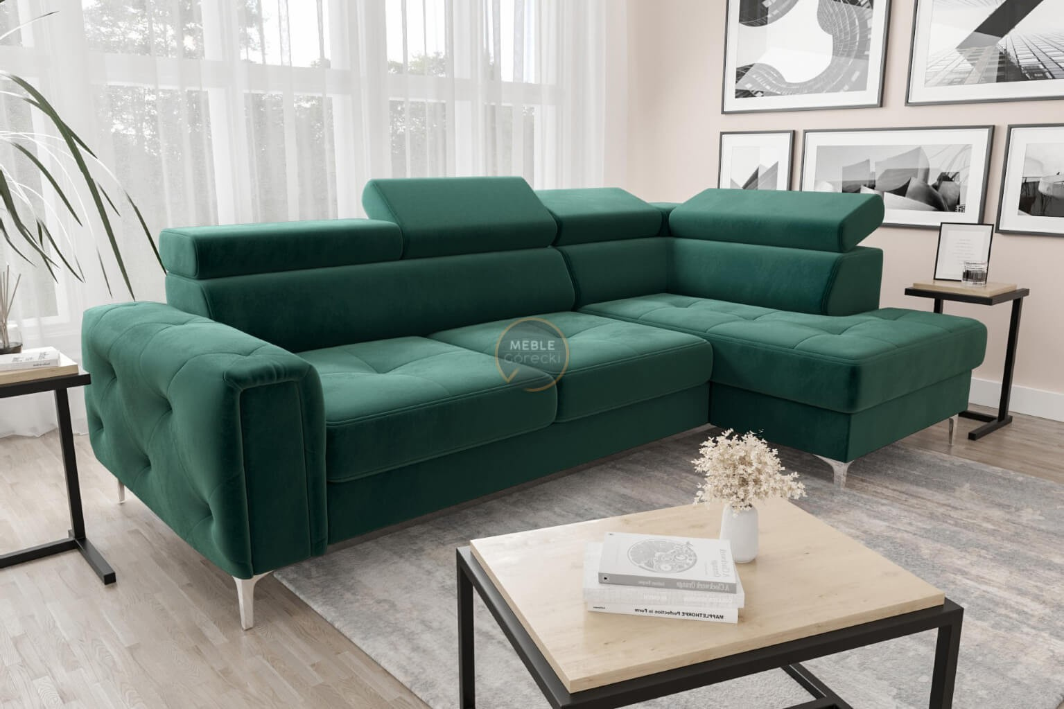 Rohová sedací souprava s funkcí spaní ORION 165x255 - zelená , pravá