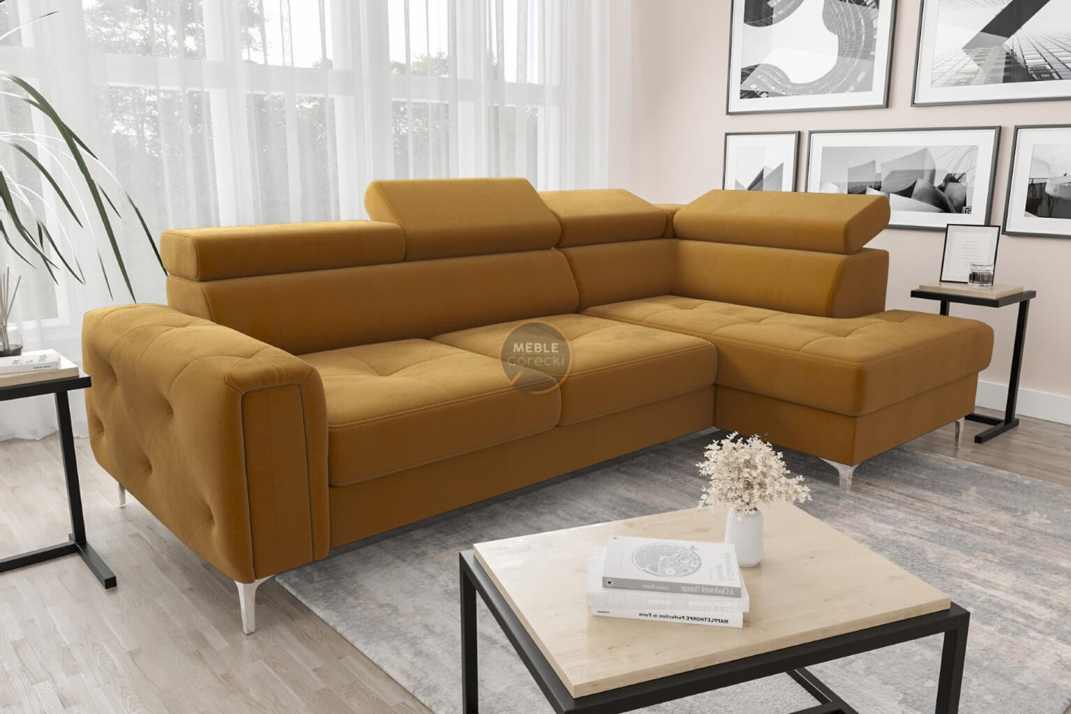 Rohová sedací souprava s funkcí spaní ORION 165x255 - žlutá , pravá