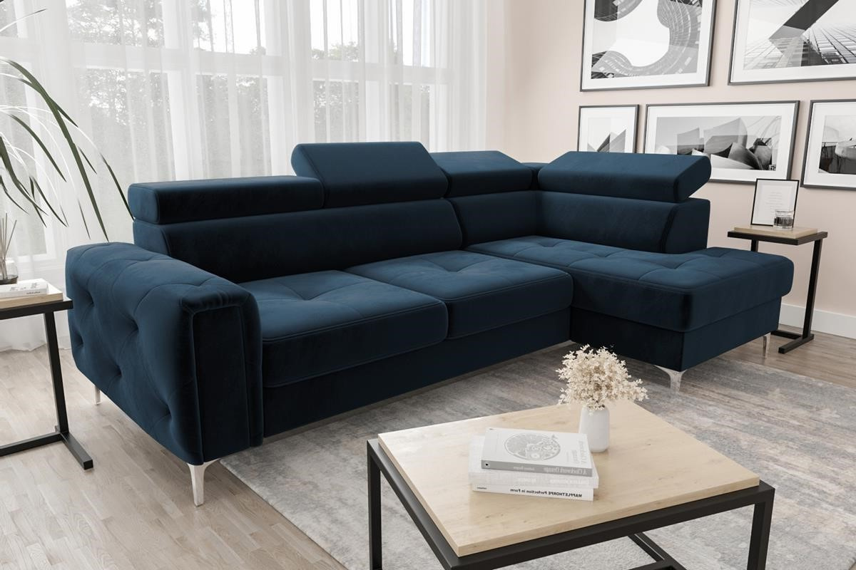 Rohová sedací souprava s funkcí spaní ORION 165x255 - modrá , pravá