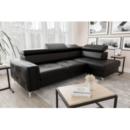 Rohová sedací souprava s funkcí spaní ORION 165x255 přírodní kůže - černá kůže, pravá