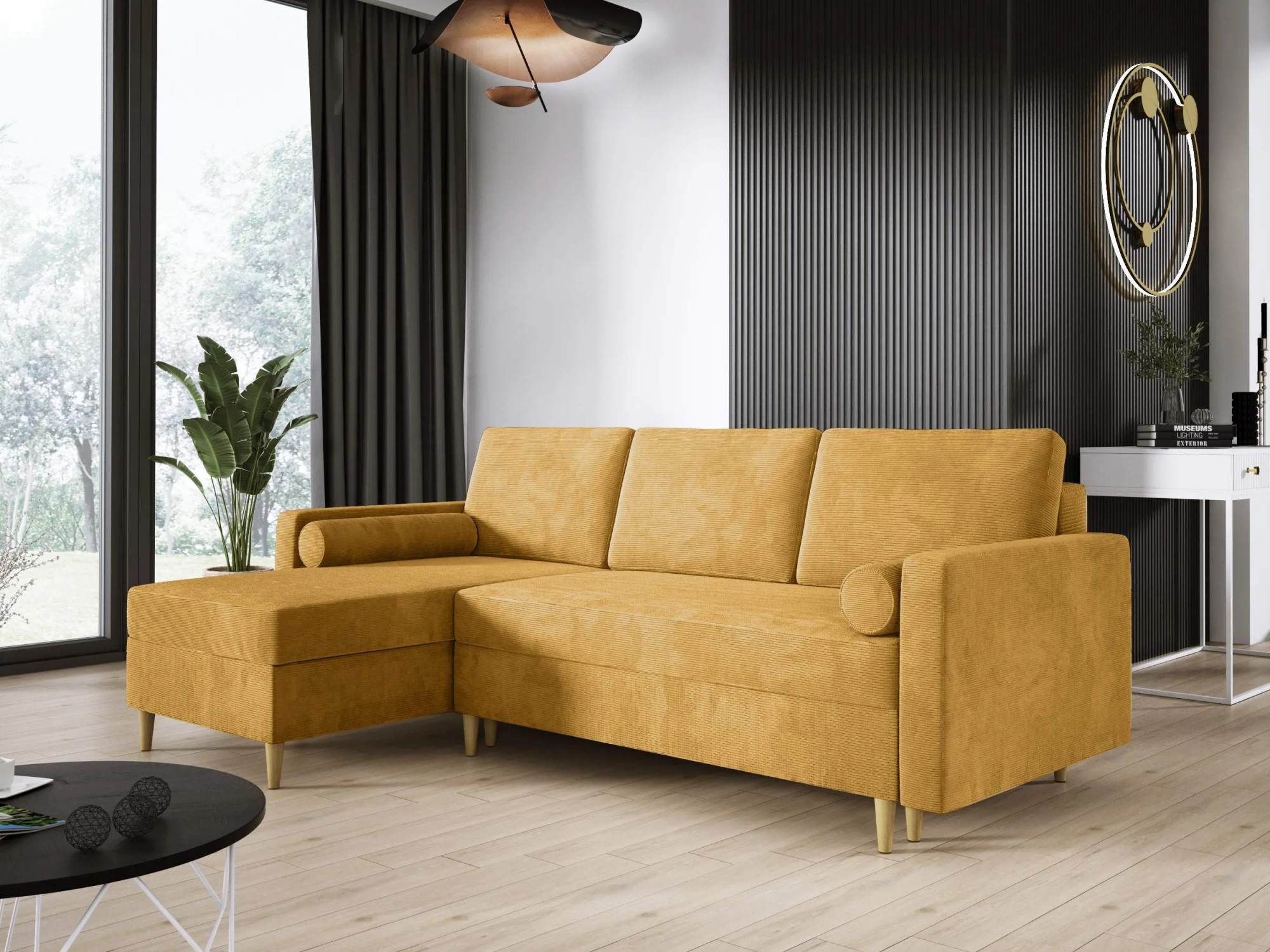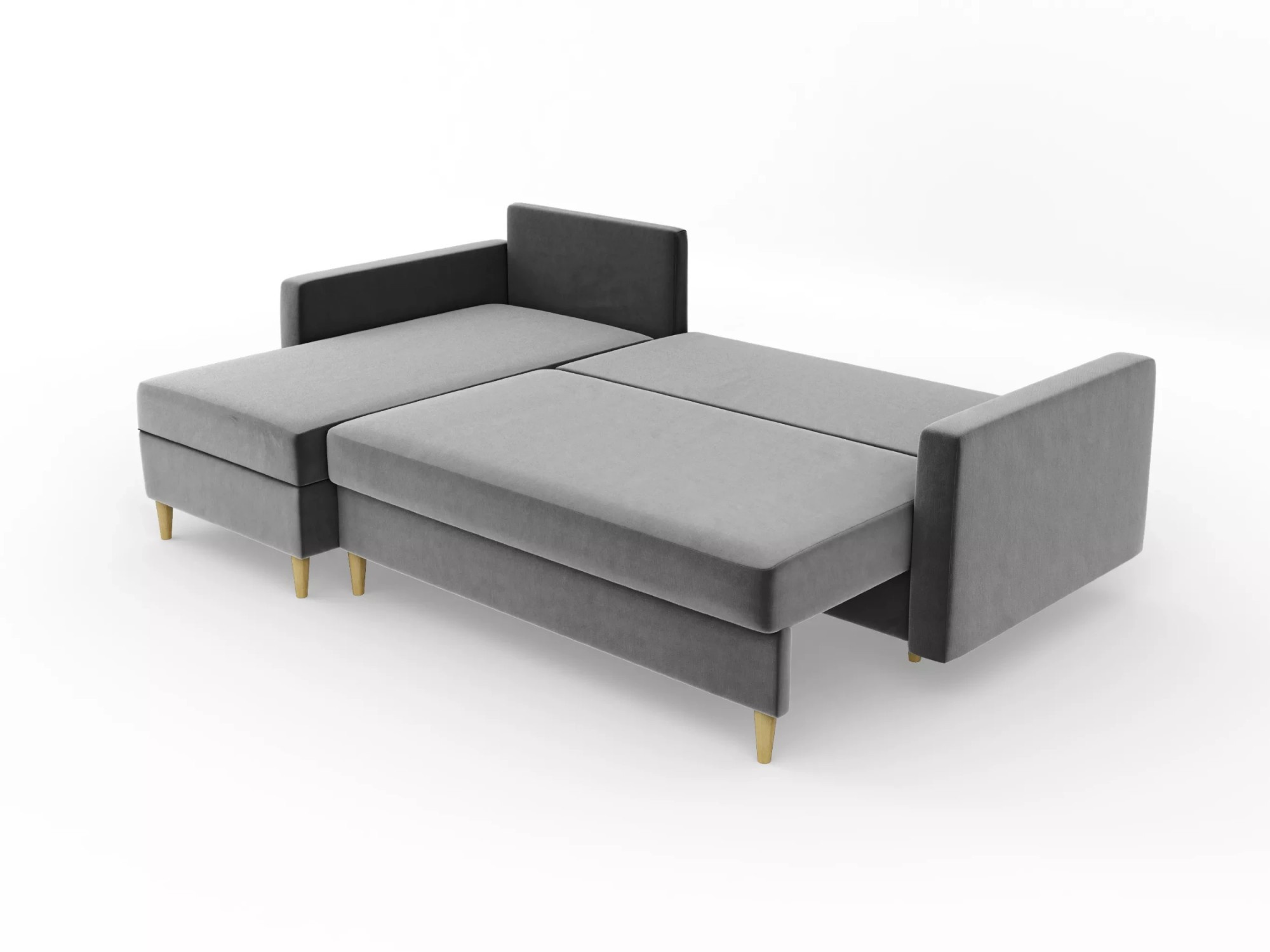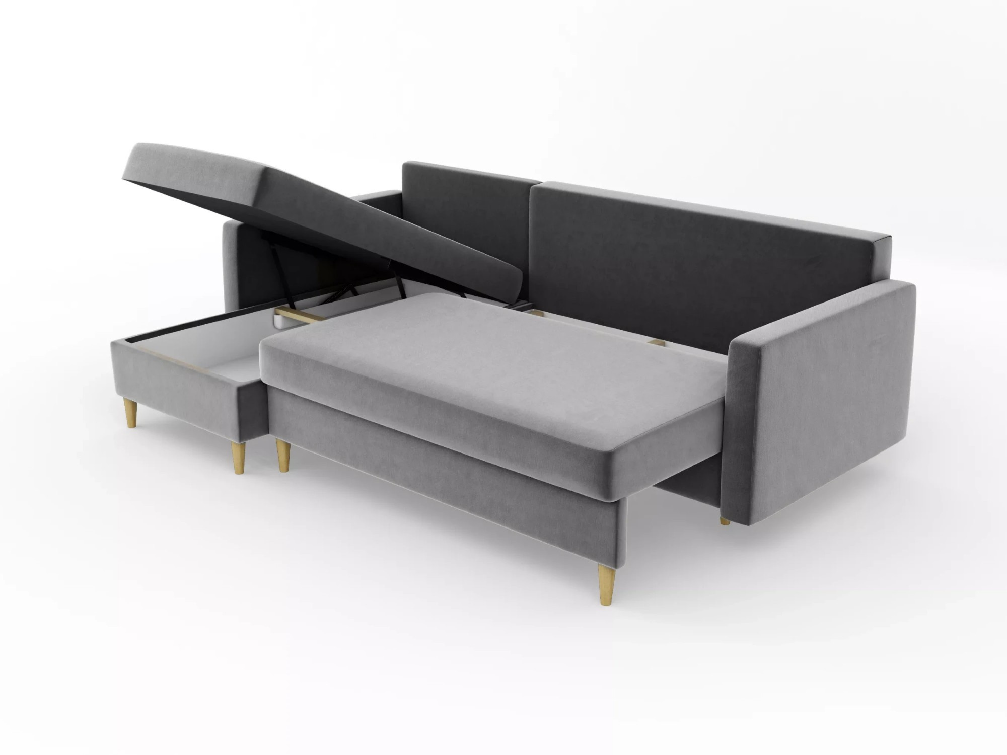 Rohová sedačka ve skandinávském stylu — SCANDI Rohová sedačka SCANDI je elegantní a funkční nábytek, který spojuje pohodlí při používání a módní skandinávský design. Jeho optimální rozměry zajišťují, že se skvěle hodí jak do velkých obývacích pokojů, tak do menších bytů. Univerzální konstrukce umožňuje montáž otomanu na libovolné straně, což umožňuje ideální přizpůsobení vašemu prostoru. Charakteristické dřevěné nožky dodávají mu lehkost a styl, a zároveň usnadňují udržování čistoty pod nábytkem. Rohová sedačka s funkcí spaní byla potažena měkkou a příjemnou na dotek čalounickou látkou s jemnou strukturou proužků, která dodává interiéru útulnost a eleganci. Tkanina se vyznačuje vysokou odolností proti oděru, díky čemuž si čalouněný rohový gauč zachová svůj vynikající vzhled po mnoho let. Vybaven dvěma úložnými prostory na ložní prádlo s automaty usnadňujícími otevírání, umožňuje pohodlné ukládání dek, polštářů nebo jiných textilií. Funkce spaní byla navržena s ohledem na každodenní používání. Rozkládání rohové sedačky probíhá s podporou automatu DL, což zaručuje snadnou a rychlou přeměnu na plnohodnotnou postel. Sedák a spací plocha jsou vyplněny bonellovými pružinami a vysoce kvalitní pěnou, což zajišťuje vysoký komfort jak během dne, tak i během spánku. Rozkládací rohová sedačka SCANDI je ideální kombinací stylu, pohodlí a praktičnosti, skvělá pro každý moderní interiér. Vlastnosti produktu univerzální rohová sedačka znamená, že si sami určíte, kam umístíte otoman při montáži, přizpůsobíte ho svým potřebám, volně stojící model s čalouněným zadním dílem umožňuje volné umístění kdekoli, dokonce i uprostřed místnosti, konstrukce založená na kombinaci dřeva, dřevotřískových desek a bonellových pružin po celé ploše sedadel a opěradla zaručuje trvanlivost a pohodlí, dva praktické úložné prostory na ložní prádlo jsou funkčním řešením, které pomáhá udržovat pořádek v domácnosti, funkce spaní typu DL umožňuje snadné rozložení nábytku a přeměnu na pohodlnou postel, možnost sundání polštářů pro snadnou údržbu čistoty, výběr z mnoha barev nožiček umožňuje přizpůsobení rohové sedačky vlastním preferencím, Rozměry rohové sedačky plocha na spaní: 200 × 140 cm, šířka: 225 cm, hloubka: 95/143 cm, výška: 75 cm, výška nožiček: 10 cm, výška sedadla: 47 cm, hloubka sedadla: 55 cm, tloušťka boků: 10 cm, *Všechny rozměry jsou uváděny s tolerancí +/- 3 cm